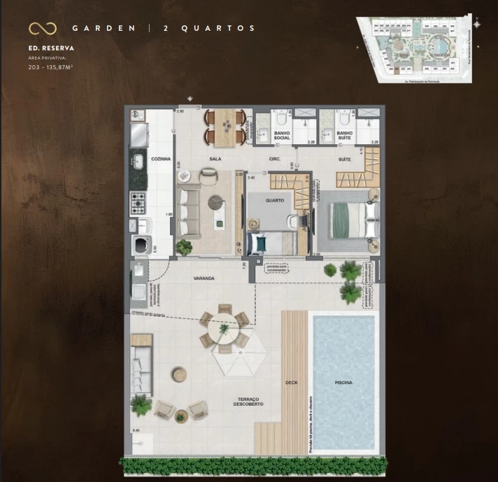 Garden de 2 quartos com 135m².