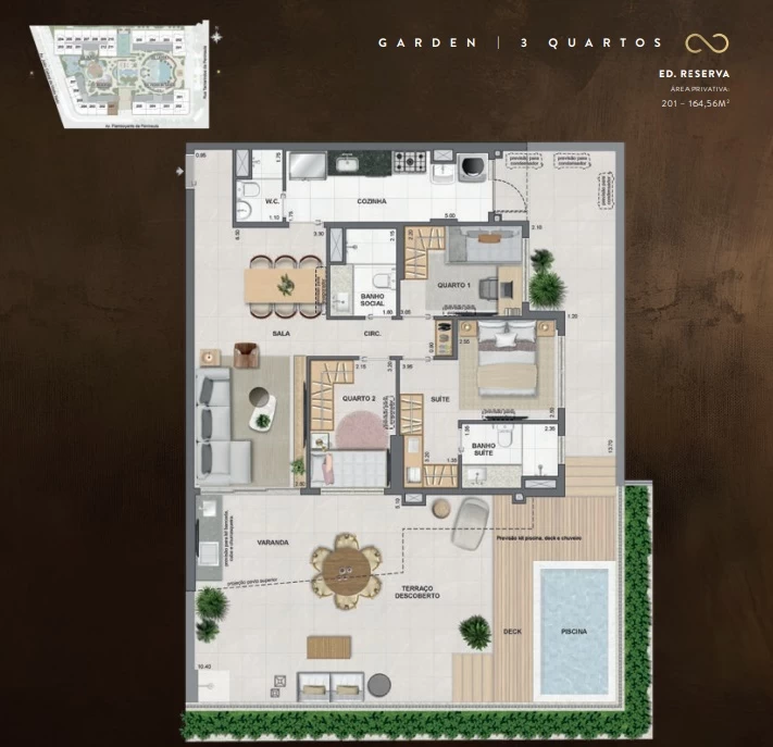 Gardens de 3 Quartos com164m² e 261m².