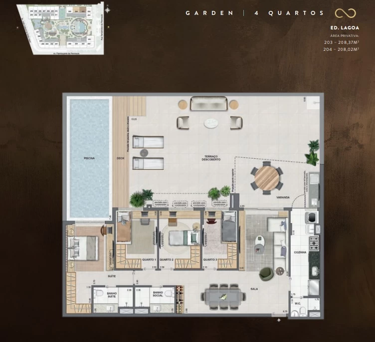 Gardens de 4 Quartos com 208m².