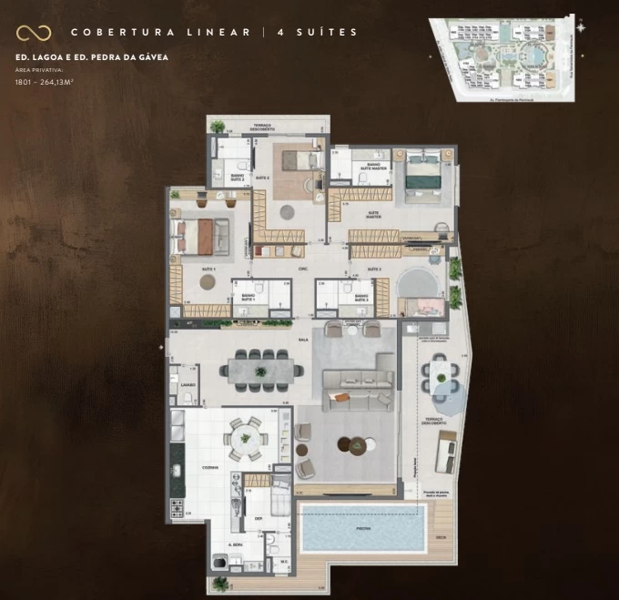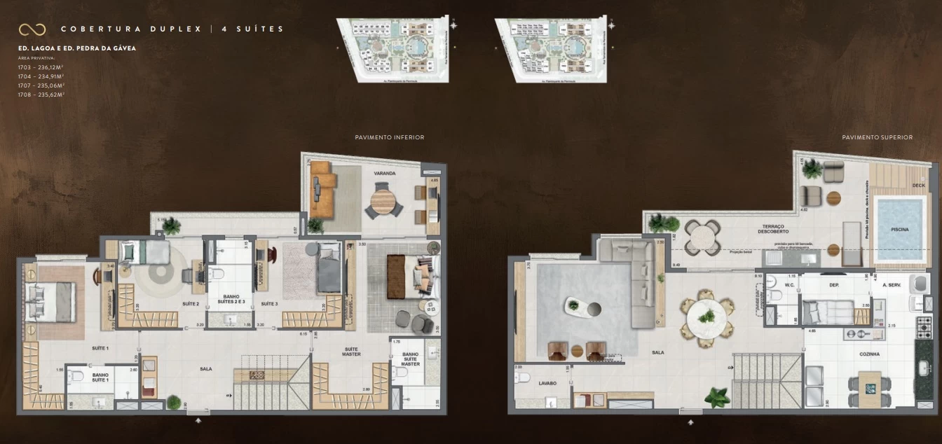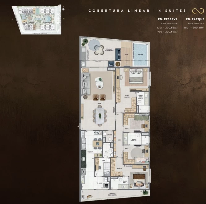 Coberturas de 4 Suítes com 200m² a 264m².